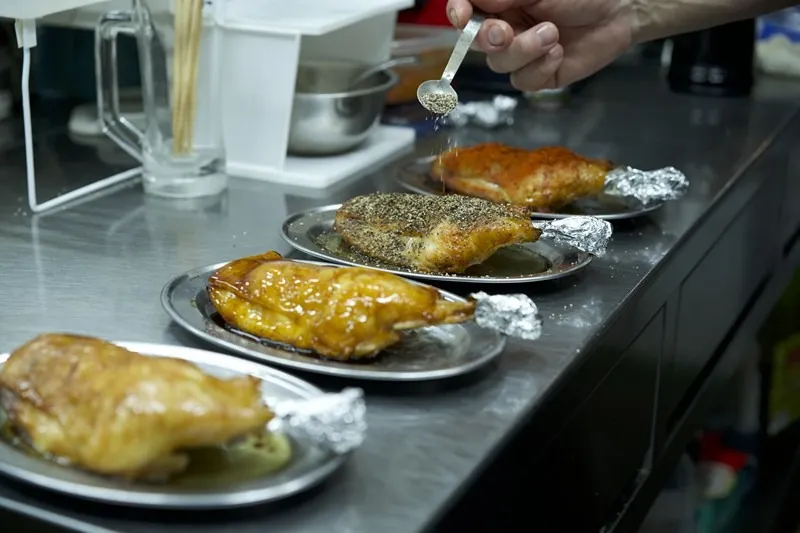 しっかり食べたい気分に応えるため、ご飯が進むがっつり系の味付けを大切にしております。塩ニンニクや焼鳥風たれ味など、鶏の旨味を引き立てつつ食欲を刺激する味付けを用意し、最後まで飽きずに食べ進めていただけるよう整えています。濃さだけに頼るのではなく、香ばしさやコクのバランスを意識し、ご飯と合わせた際に一体感が生まれる仕上がりを重視しております。天神で、満足感と食べやすさを両立した料理をご提供します。